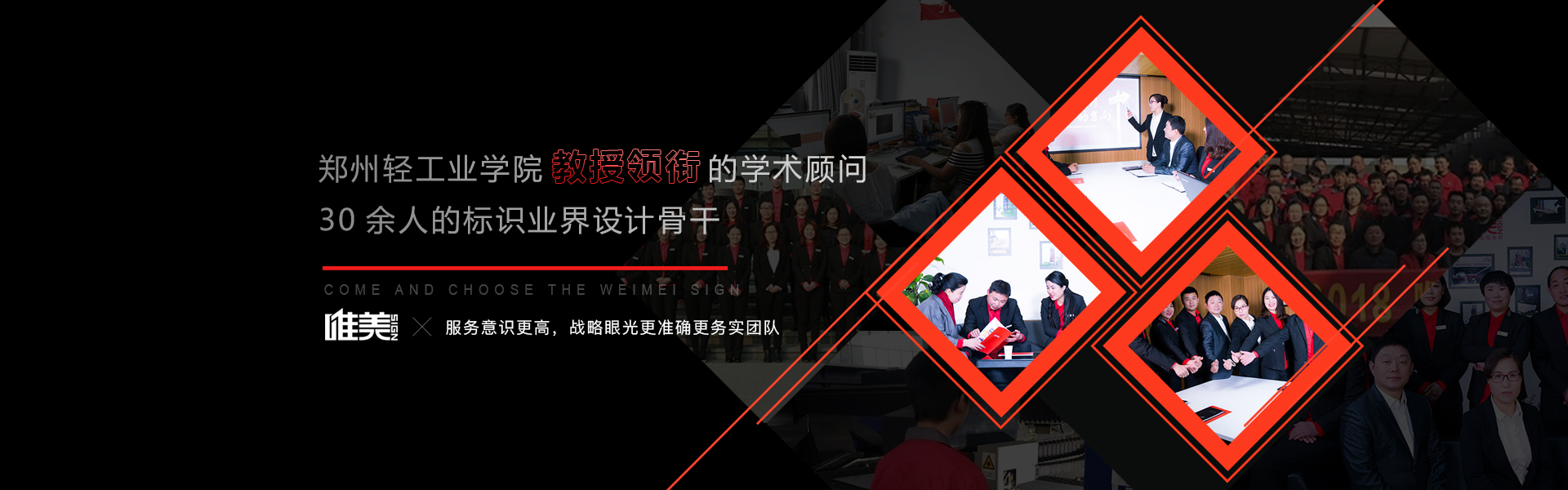 鄭州唯美標識設計制作有限公司是一家集標識系統(tǒng)開發(fā)、設計、制作、安裝、售后服務于一體的專業(yè)化標識公司。 13年專注標識行業(yè)定制服務,已成為地產(chǎn)住宅、商業(yè)廣場 、商辦公務、醫(yī)院系統(tǒng)、學校文化、工業(yè)園區(qū)、旅游景區(qū)、酒店餐飲、銀行金融等多個領(lǐng)域的提供標識系統(tǒng)解決方案公司。